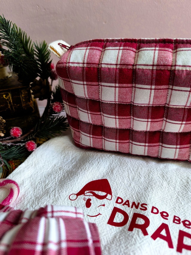 • une trousse de toilette assortie et sa doublure en coton rayé (18 cm x10 cm x 6.5 cm)