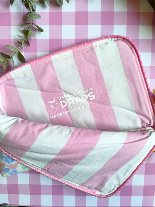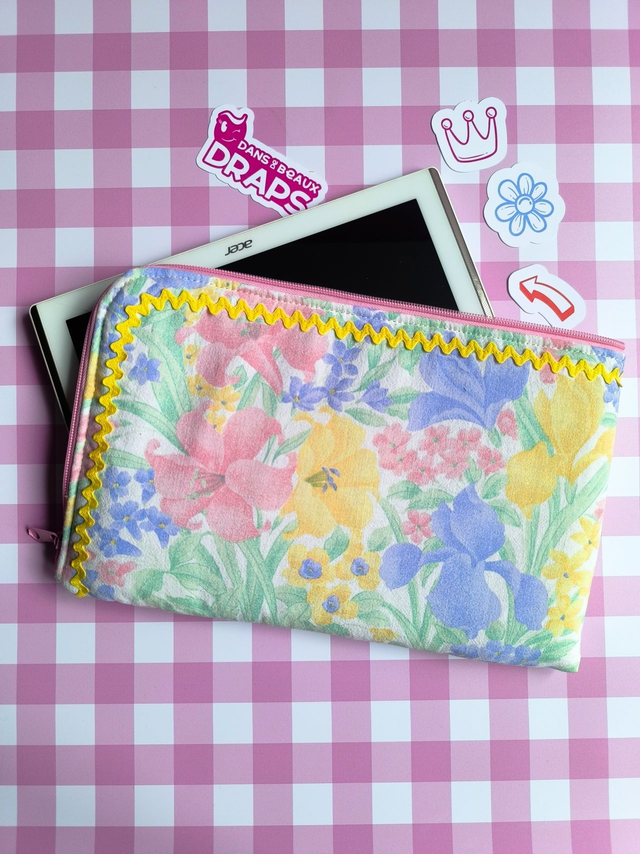 Housse pour tablette matelassée, cousue à la main à partir de chutes de linge de maison upcyclé.